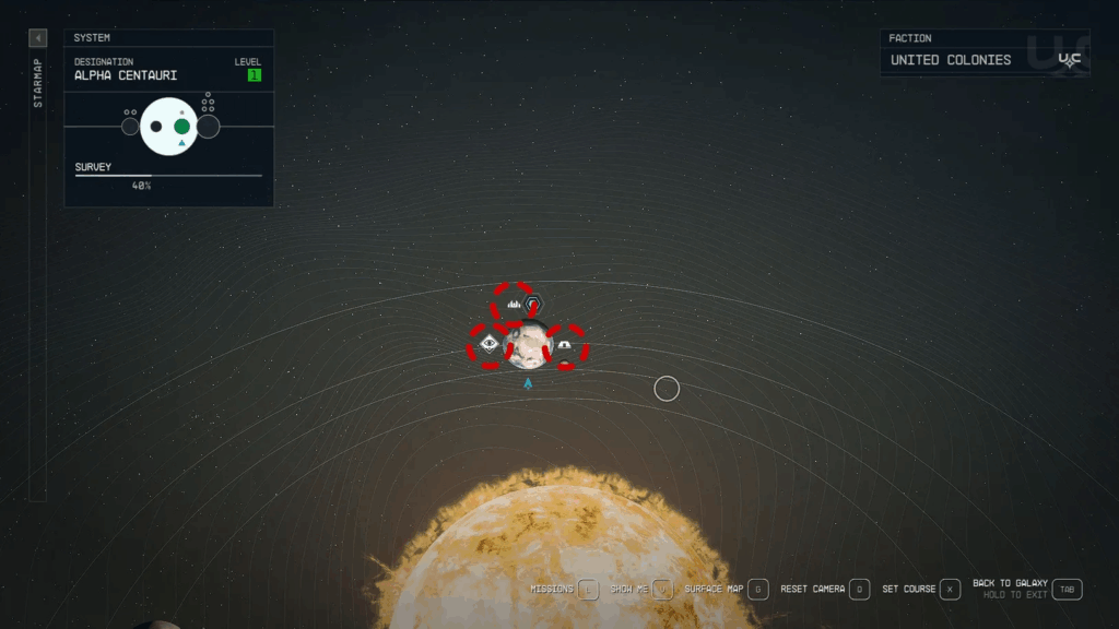 - If a Star System or Planet has a sloping triangle icon with an indentation in the middle, that means there is some sort of settlement to be found. This can be a large city like New Atlantis, a smaller outpost like Titan’s New Homestead, or a working space station you can trade at. These icons may only appear once you’ve visited that system, however.