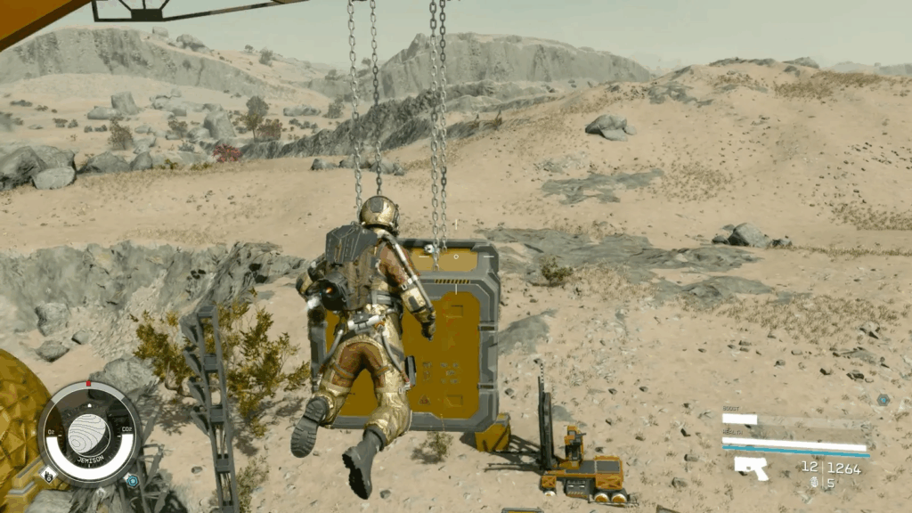 If you need to swap out items in the hold, there are a couple more ways to do so. When in your ship (and even up to 250 meters outside of your ship), open up your character menu and select the ship icon in the left corner, and you’ll find the option to view your cargo (by pressing F on PC and X on controller), letting you retrieve or store items without having to interact with the terminal by the pilot seat.