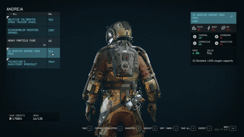 If you want to look your best in towns, there’s a way to remove your spacesuit and helmet without unequipping them and losing out on their stats. When browsing your Spacesuits located within your inventory tab, players can simply select the “Show/Hide Spacesuit in Settlements” option (Press T on PC, RB on Xbox controller). This will either hide or show off your Spacesuit while in Settlements and Cities, rather than having to manually equip and unequip each time you land in a safe place. The same goes for helmets when in areas where there is breathable air. (You can also holster weapons at will by holding the reload button.)
