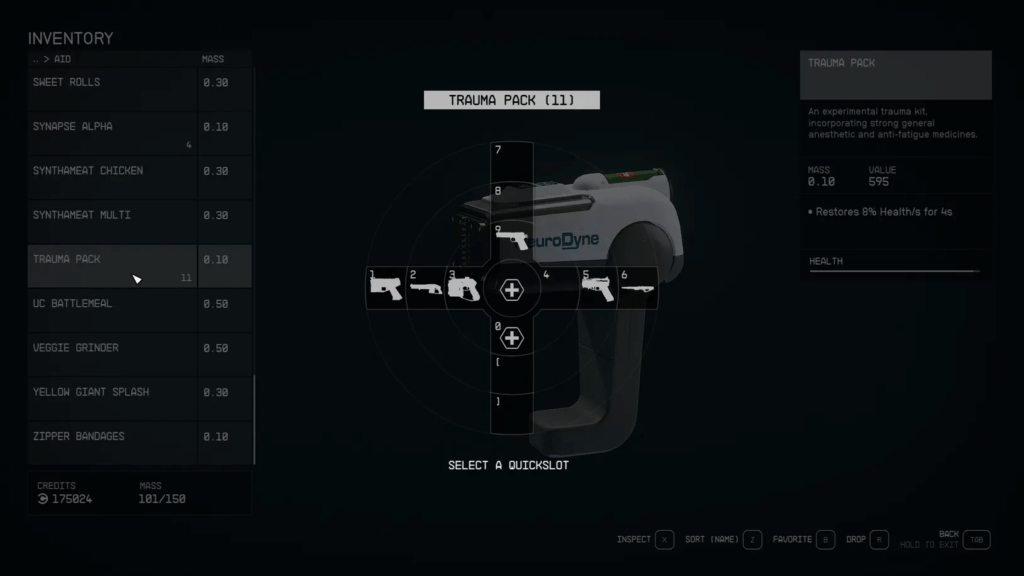 You can also Quick Slot items, such as med kits or food in order to refill your health bar during an enemy encounter.