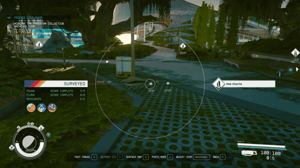 Selecting that planet will show you a few Diamonds located around the planet’s surface, two of which will be New Atlantis locations as long as you have completed the planet’s initial story quest; The Lodge and New Atlantis. Either one of these options will land you in the city proper.