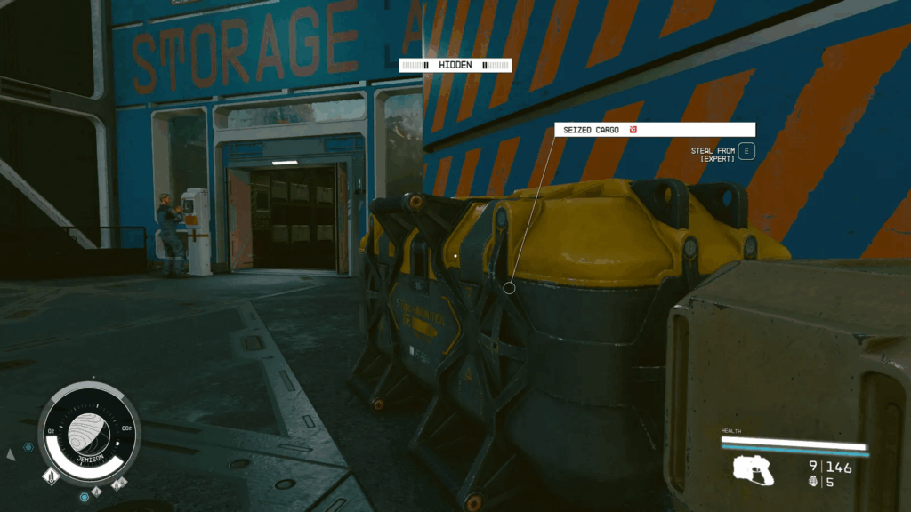 Your Starter Spaceship, The Frontier, has a cargo hold that can store many more materials and resources than your body could handle. You can access this cargo in several ways, but the easiest way to deposit items is by looking for a small terminal to the left of your pilot seat. There’s even a keybinding to automatically store everything in your Resources tab directly into the cargo hold with a single press (T on PC, RB on Xbox).