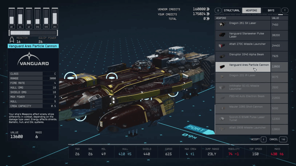 Different Spaceports and Cities can have different options for your ship upgrades. While Mars can provide you with basic upgrades and parts for your ship, other Cities and Ports along the way might offer better and higher quality ship parts for you to utilize. It’s important to check what each Ship Upgrade terminal or NPC has to offer before making a decision on what you’d like to add or subtract from your ship.