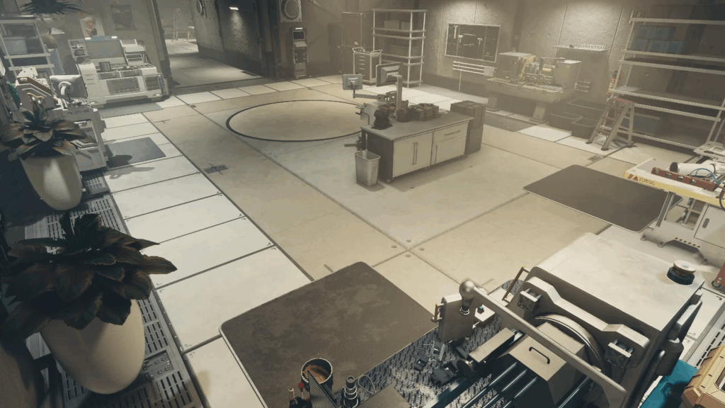 After meeting Constellation, you’ll get a brief tour of the upstairs area. But if you go downstairs just after making a right upon entering the main door, there’s a whole underground section complete with crafting benches, a research station, and a chest with seemingly infinite capacity.